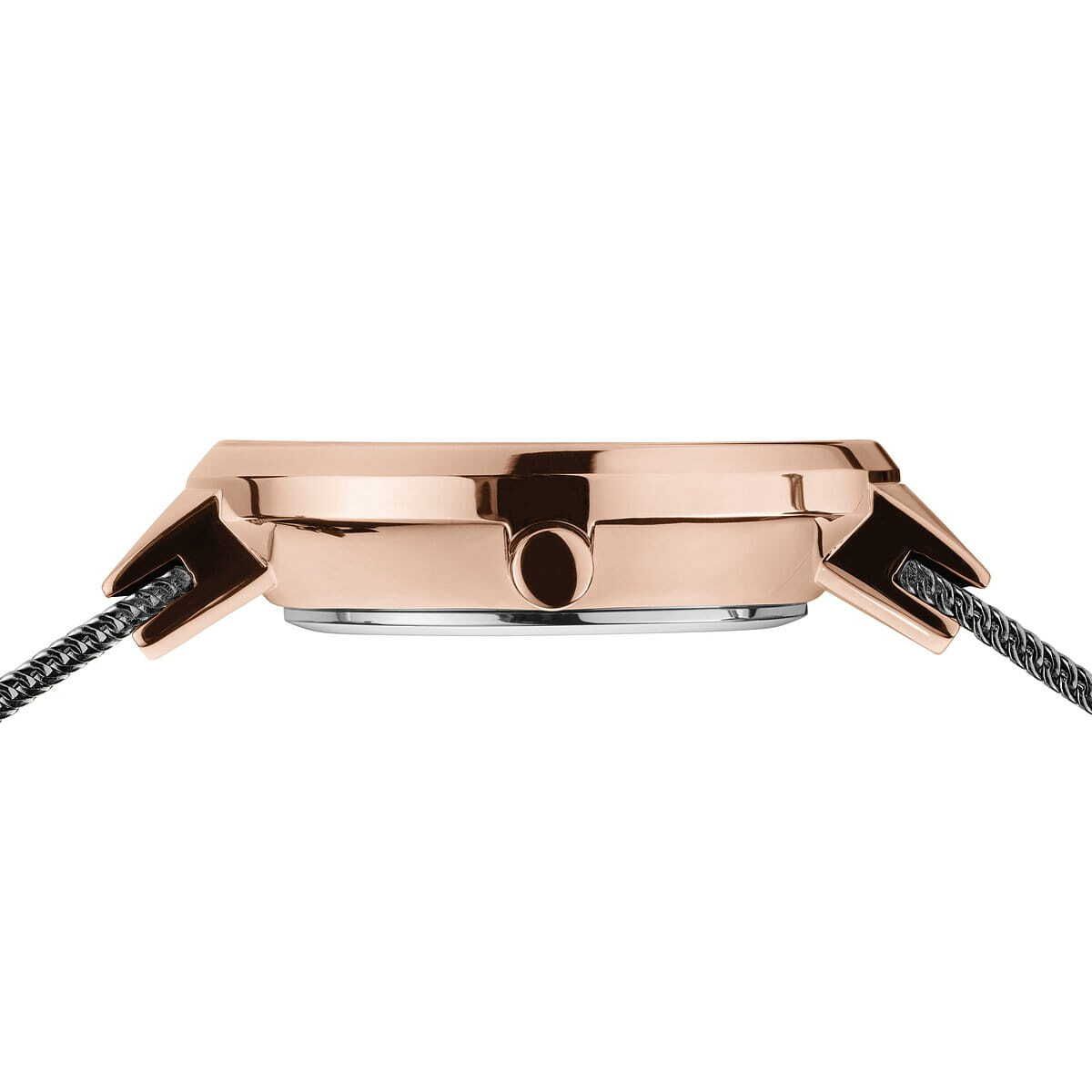 Женские кварцевые аналоговые наручные часы на солнечной батарее. Серия Solar Collection. Механизм EPSON AS01AM. Центральные часовая, минутная и секундная стрелки золотистого цвета. На сером циферблате намеренно отсутствуют индексы, что полностью соответствует минималистичному скандинавскому дизайну. Питание от солнечной энергии - источником питания служит светочувствительная панель и аккумулятор, заряжаемый при попадании солнечного света на циферблат часов. Механизм на солнечной батарее сохраняет энергию в течение нескольких месяцев, избавляя от необходимости замены батарейки. Запас хода после полной зарядки от 6 до 12 месяцев. Круглый стальной полированный корпус с IP покрытием цвета розового золота. Диаметр корпуса 31 мм, толщина 9 мм. Устойчивое к возникновению мелких царапин плоское сапфировое стекло. Стальной браслет миланского плетения с серым IP покрытием. Раскладывающаяся застёжка с предохранительной защёлкой. Ширина браслета 14 мм, длина браслета 180 мм. Водонепроницаемость WR50 (мытьё рук, дождь).