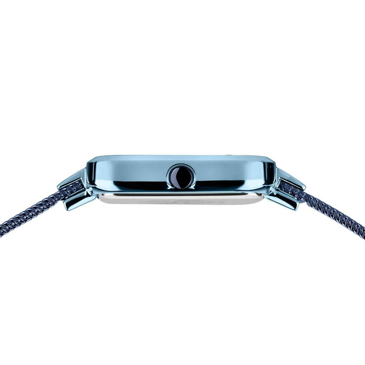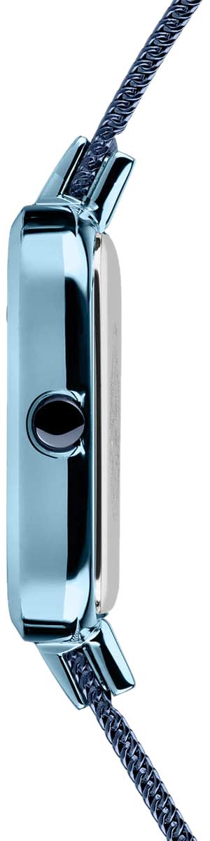 Женские кварцевые наручные часы с аналоговым отображением времени. Коллекция Petite Square. Классический и сдержанный дизайн часов подчеркнёт ваш индивидуальный стиль. Механизм Miyota 5Y20. Центральные часовая и минутная стрелки. Синий перламутровый циферблат. Прямоугольный стальной полированный корпус с IP покрытием синего цвета. Размеры корпуса 35 мм на 20 мм, толщина 6 мм. Устойчивое к возникновению мелких царапин плоское сапфировое стекло. Стальной браслет миланского плетения с синим IP покрытием. Раскладывающаяся застёжка с предохранительной защёлкой. Ширина браслета 8 мм, длина браслета 175 мм. Водонепроницаемость WR30 (защита от брызг).