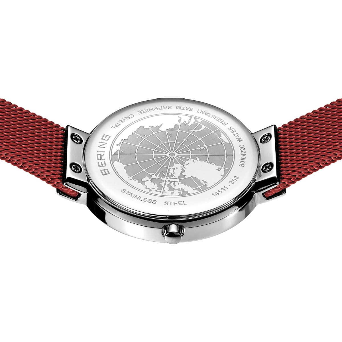 Женские кварцевые наручные часы с аналоговым отображением времени. Серия Classic Collection. Механизм MIYOTA 9T22. Центральные часовая и минутная стрелки. Красный циферблат с гильошированием в виде солнечных лучей. Круглый стальной полированный корпус диаметром 31 мм, толщиной 6 мм. Устойчивое к возникновению мелких царапин плоское сапфировое стекло. Стальной браслет миланского плетения с красным IP покрытием, застежка с предохранительной защёлкой. Ширина браслета 14 мм, длина браслета 180 мм. Водонепроницаемость WR50 (мытьё рук, дождь).