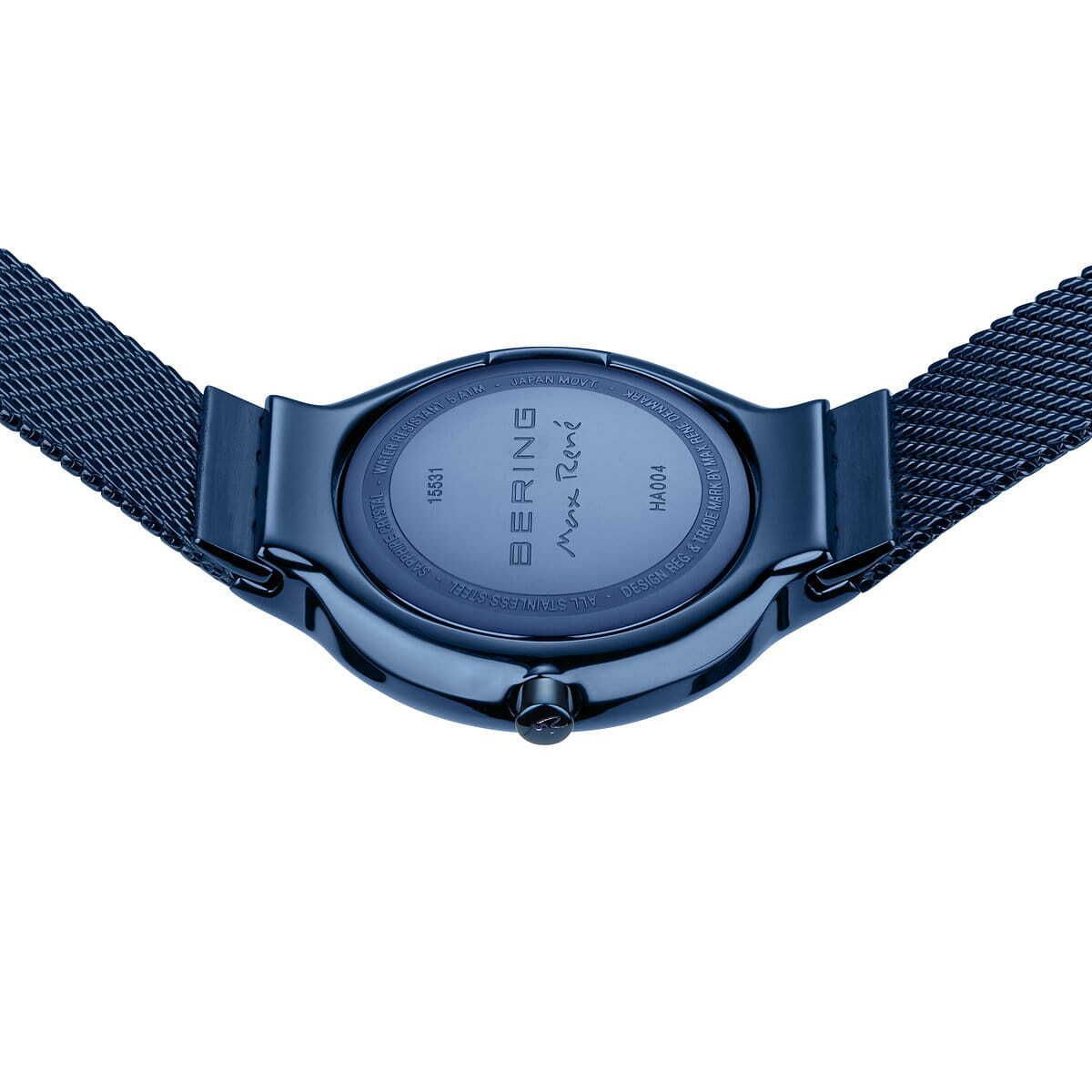 Женские кварцевые наручные часы с аналоговым отображением времени. Slim Design из коллекции Max René. Коллекция создана ведущим датским дизайнером Максом Рене. Механизм Miyota GL22. Центральные часовая и минутная стрелки. Синий циферблат с автографом Макса Рене и часовыми метками в виде штрихов. Круглый стальной полированный корпус с синим IP покрытием. Диаметр корпуса 31 мм, толщина 7 мм. Устойчивое к возникновению мелких царапин плоское сапфировое стекло. Стальной браслет миланского плетения с синим IP покрытием. Ширина браслета 14 мм, длина браслета 165 мм. Стальная задняя крышка с автографом Макса Рене. Инициалы Макса Рене также выгравированы на переводной головке. Водонепроницаемость WR50 (мытьё рук, дождь).
