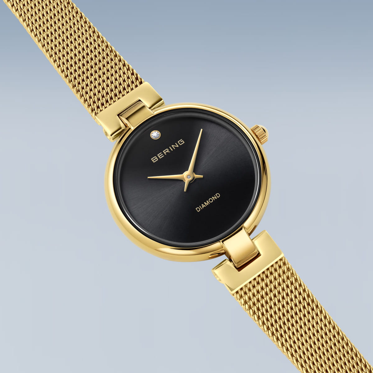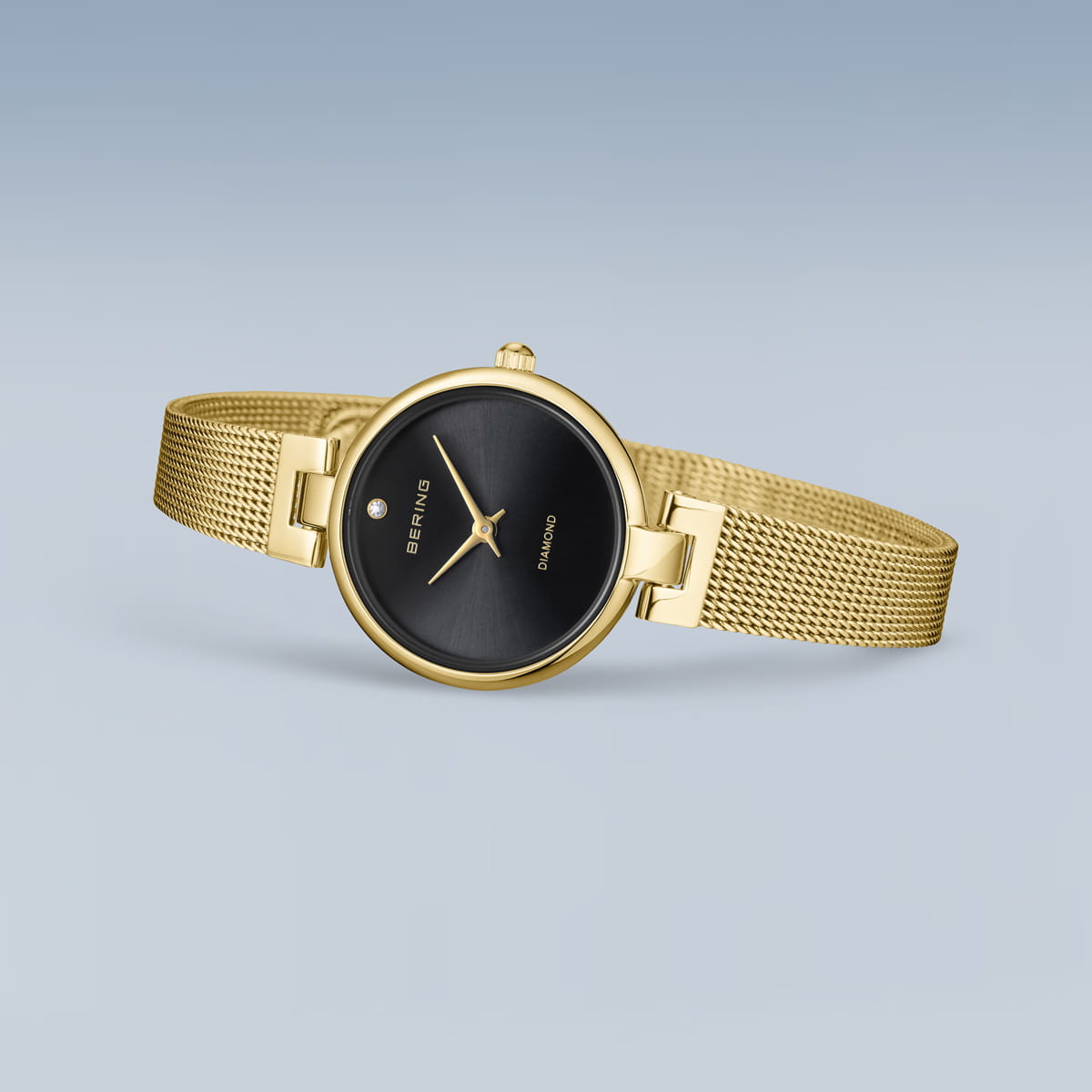 Женские кварцевые наручные часы с аналоговым отображением времени. Серия Classic Collection Diamond - идеальное сочетание модного стиля и классической элегантности. Центральные часовая и минутная стрелки золотистого цвета. Чёрный циферблат украшен кристаллом. Круглый стальной полированный корпус с IP покрытием цвета жёлтого золота. Диаметр корпуса 24 мм. Устойчивое к возникновению мелких царапин плоское сапфировое стекло. Стальной браслет миланского плетения с IP покрытием цвета жёлтого золота. Ширина браслета 12 мм. Водонепроницаемость WR30 (защита от брызг).
