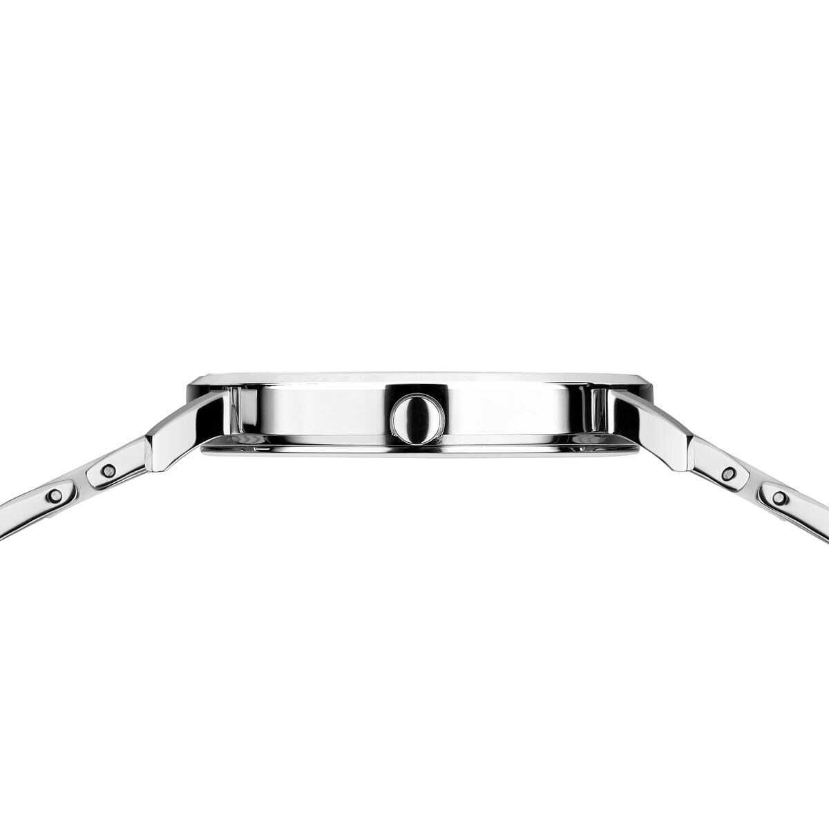 Женские кварцевые наручные часы с аналоговым отображением времени. Серия Classic Collection Slim Ceramic. Высокотехнологичная керамика — материал с уникальными свойствами. Помимо высокой устойчивости к царапинам, она очень лёгкая, термостойкая и гипоаллергенная. Сверхгладкая поверхность придаёт материалу уникальный эффект «Smooth Touch».. Центральные часовая и минутная стрелки. Белый циферблат с гильошированием в виде солнечных лучей. Круглый стальной полированный корпус. Диаметр корпуса 35 мм, толщина 6 мм. Устойчивое к возникновению мелких царапин плоское сапфировое стекло. Стальной браслет с керамическими вставками белого цвета, застёжка клипса-бабочка. Ширина браслета 18 мм, длина браслета 150 мм. Водонепроницаемость WR50 (мытьё рук, дождь).