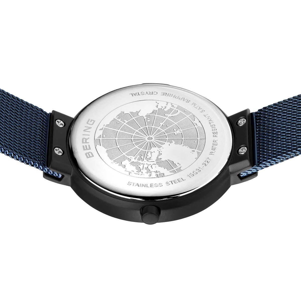 Женские кварцевые наручные часы с аналоговым отображением времени. Серия Classic Collection. Механизм MIYOTA GL22. Центральные часовая и минутная стрелки. Синий циферблат с гильошированием в виде солнечных лучей. Круглый стальной полированный корпус с чёрным IP покрытием. Диаметр корпуса 31 мм, толщина 6 мм. Устойчивое к возникновению мелких царапин плоское сапфировое стекло. Стальной браслет миланского плетения с синим IP покрытием. Ширина браслета 14 мм, длина браслета 180 мм. Водонепроницаемость WR50 (мытьё рук, дождь).