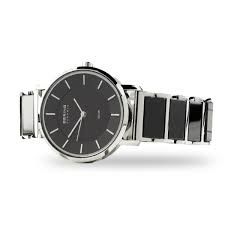 Женские кварцевые аналоговые наручные часы на солнечной батарее. Коллекция Solar Ceramic. Среди новинок серии Ceramic Collection впервые появилась модель с солнечной батареей. Механизм Epson AS01AM. Центральные часовая, минутная и секундная стрелки серебристого цвета. Чёрный циферблат с часовыми метками в виде серебристых штрихов. Питание от солнечной энергии (не требуется замены батарейки) - источником питания служит светочувствительная панель и аккумулятор, заряжаемый при попадании солнечного света на циферблат часов. Запас хода при полностью заряженной батарее от 6 до 12 месяцев. Круглый стальной полированный корпус диаметром 35 мм, толщиной 8 мм. Устойчивое к возникновению мелких царапин плоское сапфировое стекло. Стальной браслет с керамическими вставками черного цвета. Ширина браслета 18 мм, длина браслета 150 мм. Керамический материал очень легкий и устойчивый к царапинам, и также обладает «эффектом гладкого прикосновения» (Smooth Touch) - для ощущения особой мягкости при ношении. Водонепроницаемость WR30 (защита от брызг).
