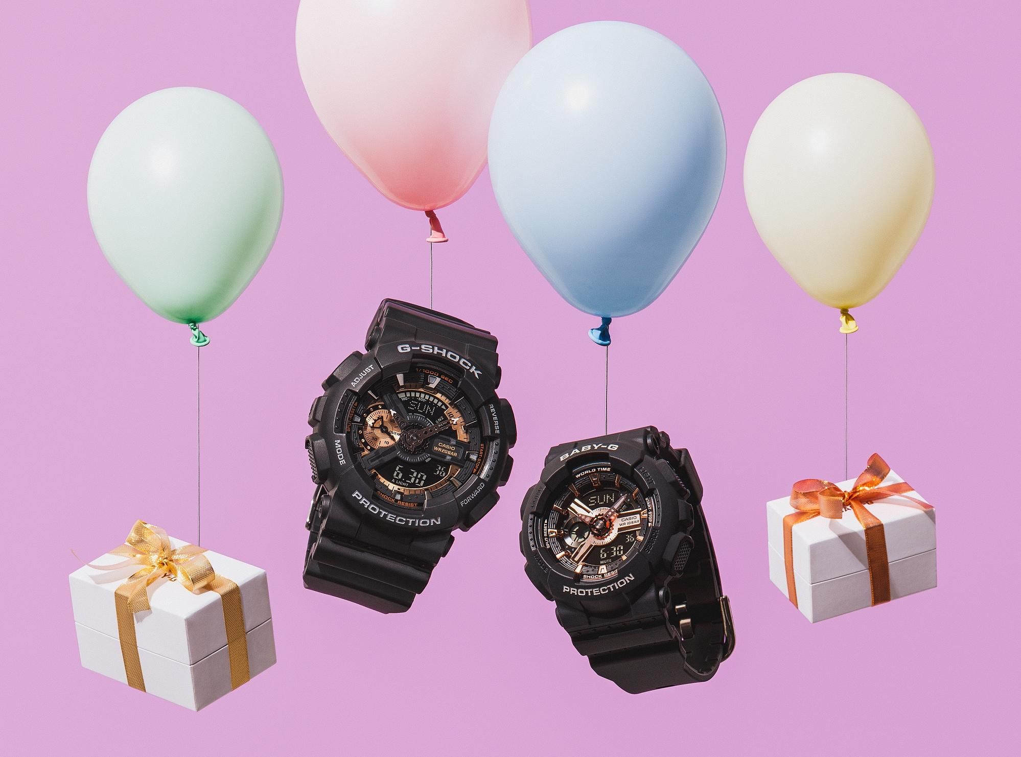 Черный циферблат с золотисто-розовыми элементами.