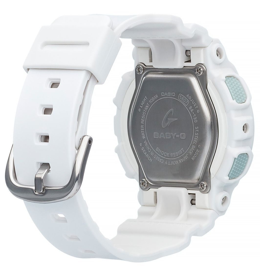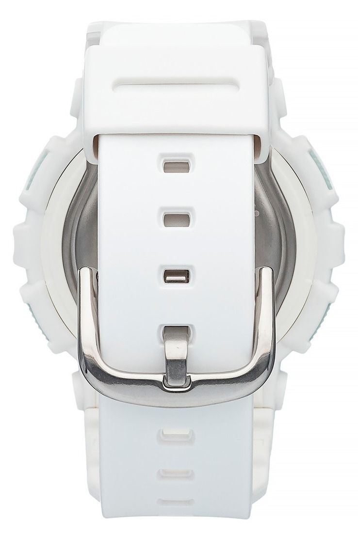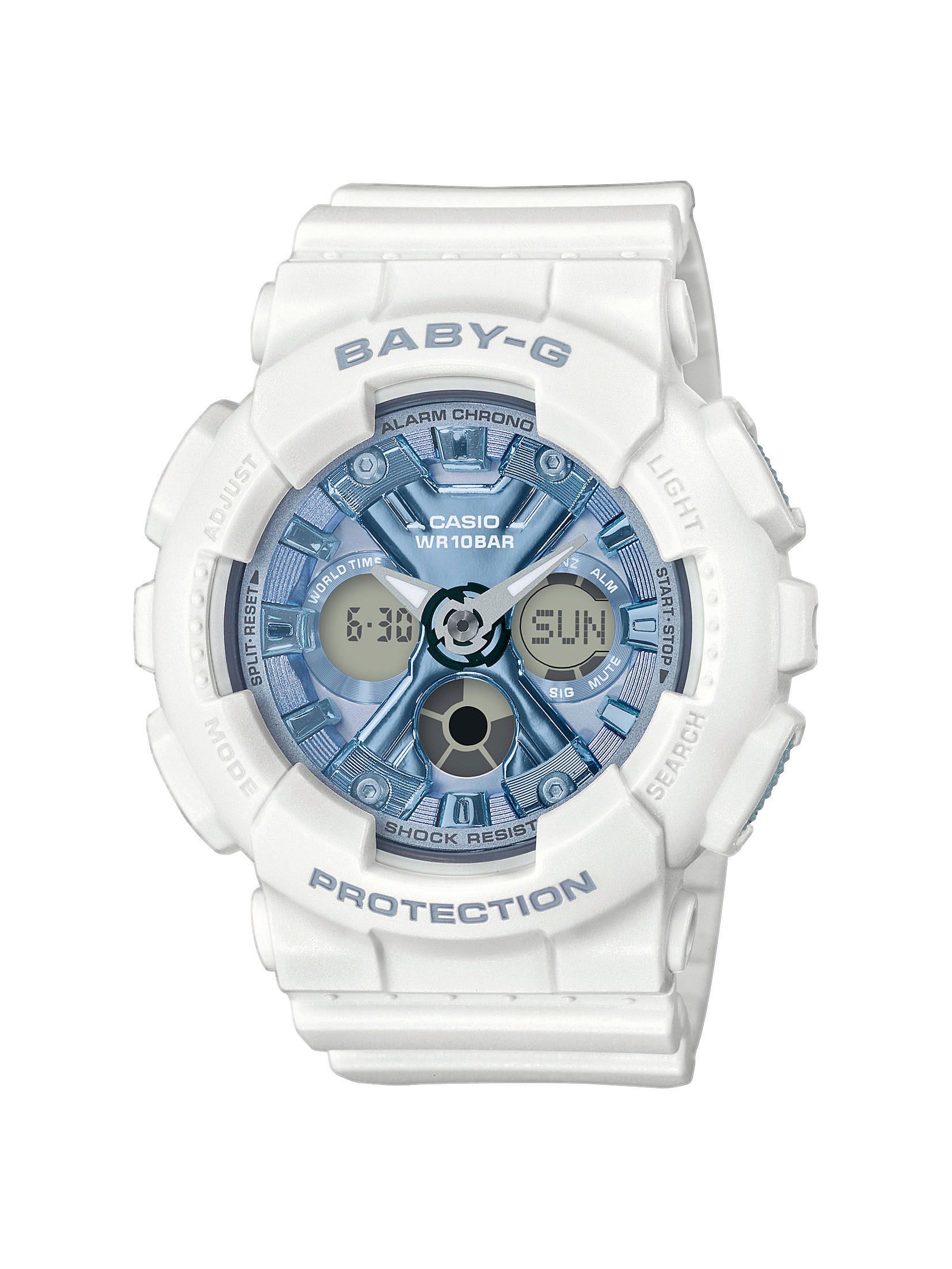 Женские кварцевые наручные часы. Коллекция Casio Baby-G. Аналогово-цифровой циферблат. Ударопрочная конструкция защищает механизм часов от ударов и вибрации. Светодиодная подсветка с функцией послесвечения. Мировое время, 29 часовых зон (48 городов + всеобщее скоординированное время). Функция летнего времени. Секундомер с точностью показаний 1/100. Режимы измерения секундомера: истекшее время, промежуточное время, время 1го-2го места. Таймер обратного отсчета времени от 1 минуты до 24 часов (1-минутное возрастание и 1-часовое возрастание). 5 будильников (1 с функцией повтора сигнала). Ежечасный сигнал. Автоматический календарь (до 2099 года). 12/24х часовой формат времени. Функция отключения звука. Функция перемещения стрелок. Минеральное стекло. Круглый корпус и ремешок выполнены из полимерного материала.