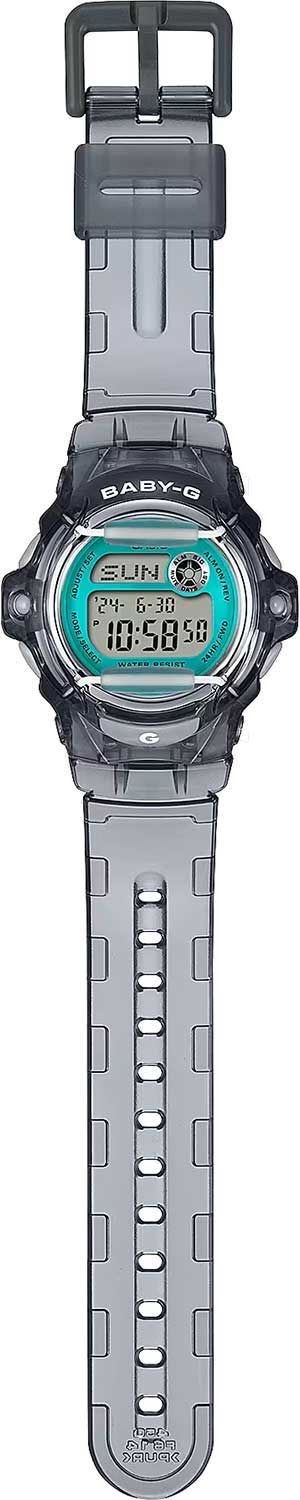 Женские кварцевые электронные наручные часы. Коллекция Casio Baby-G. Противоударный корпус защищает механизм часов от ударов и вибрации. Электролюминесцентная подсветка с функцией послесвечения. Записная телефонная книжка для хранения фамилий и номеров телефонов на 25 абонентов. Счетчик дней - отображает число дней между текущей и какой-либо другой датой. Емкость памяти: 5 записей (8 символов). Мировое время 29 часовых зон (30 городов), отображение кода города. Автоматический переход на зимнее и летнее время, возможность включения/отключения данной функции. Секундомер с точностью показаний 1/100 с и максимальным временем измерения - 1 час. Таймер обратного отсчета от 1 минуты до 24 часов. 5 ежедневных будильников (один с функцией повтора). Ежечасный сигнал. Функция включения/отключения звука кнопок. Автоматический календарь (до 2099 года). 12/24х часовой формат времени. Минеральное стекло. Круглый корпус выполнен из полимерного полупрозрачного пластика со вставками из нержавеющей стали. Протекторы дисплея. Полупрозрачный пластиковый ремешок.