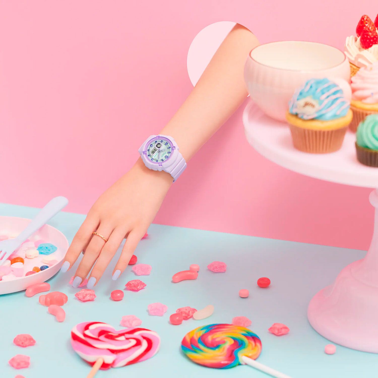 Сиреневый ремешок из полимерного материала, стандартная застежка.