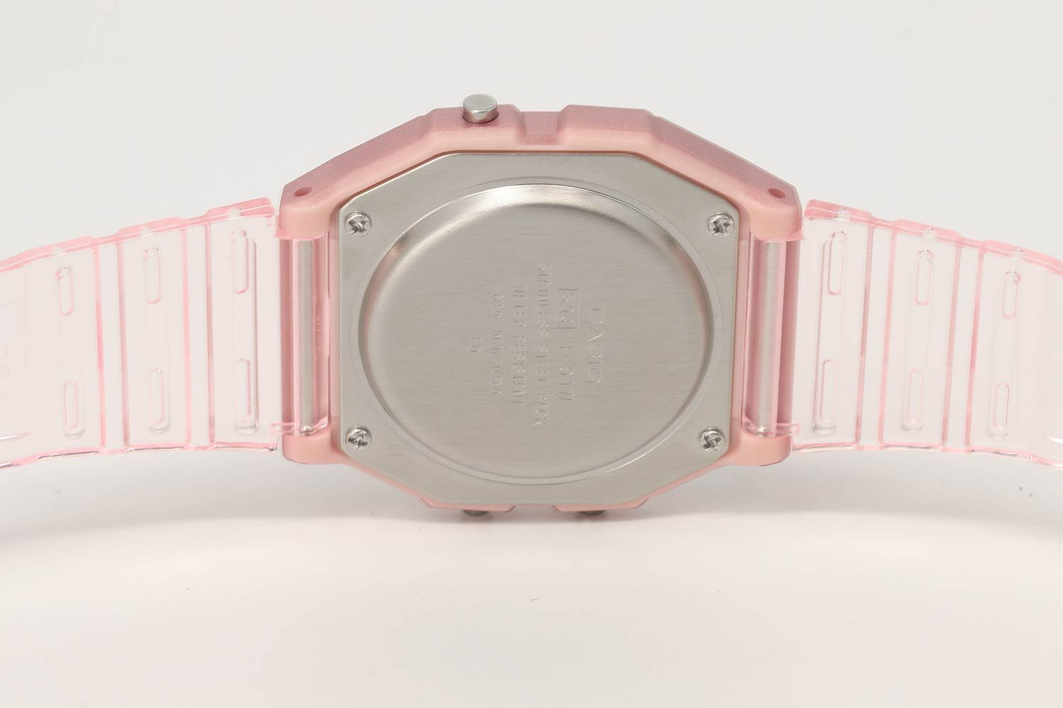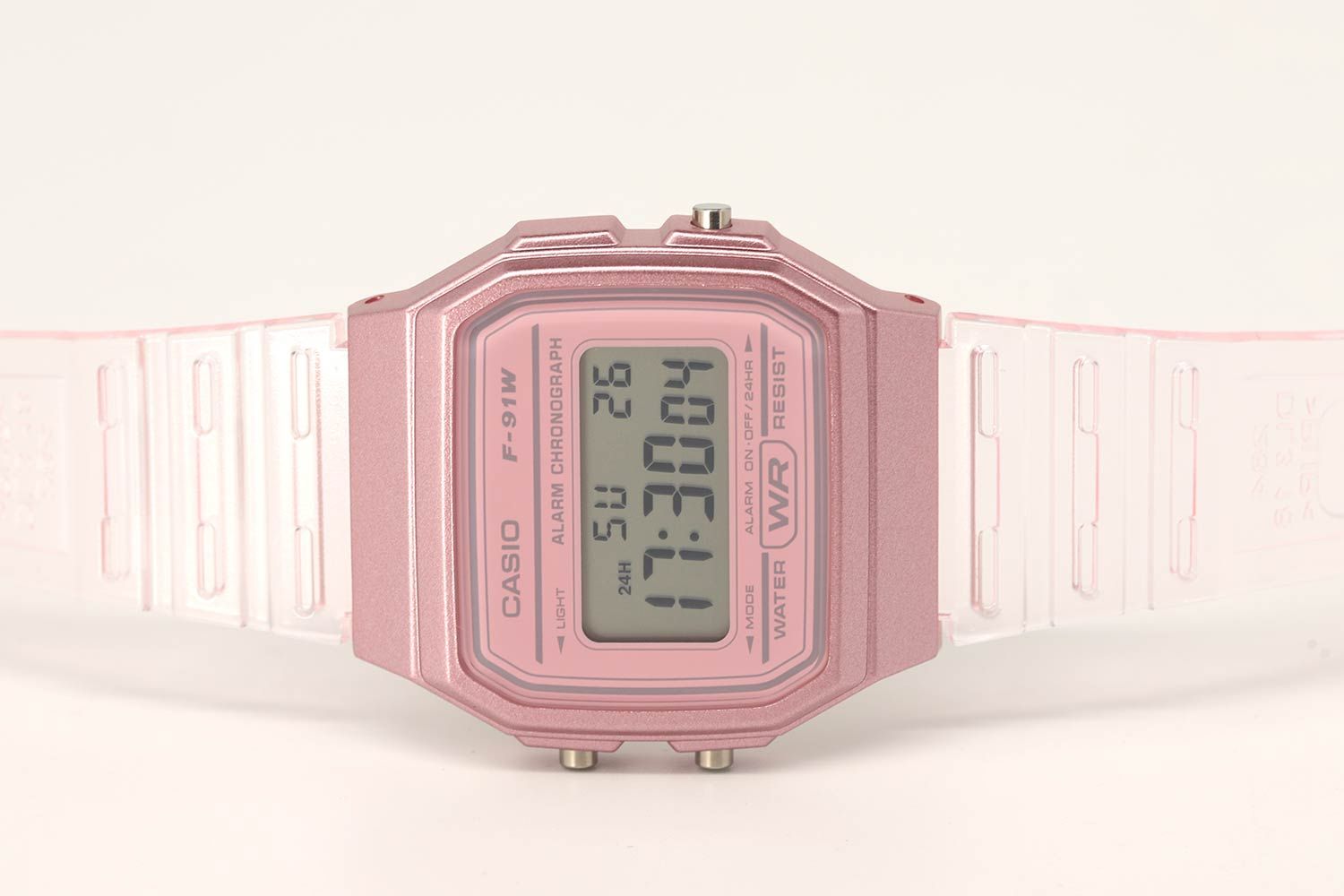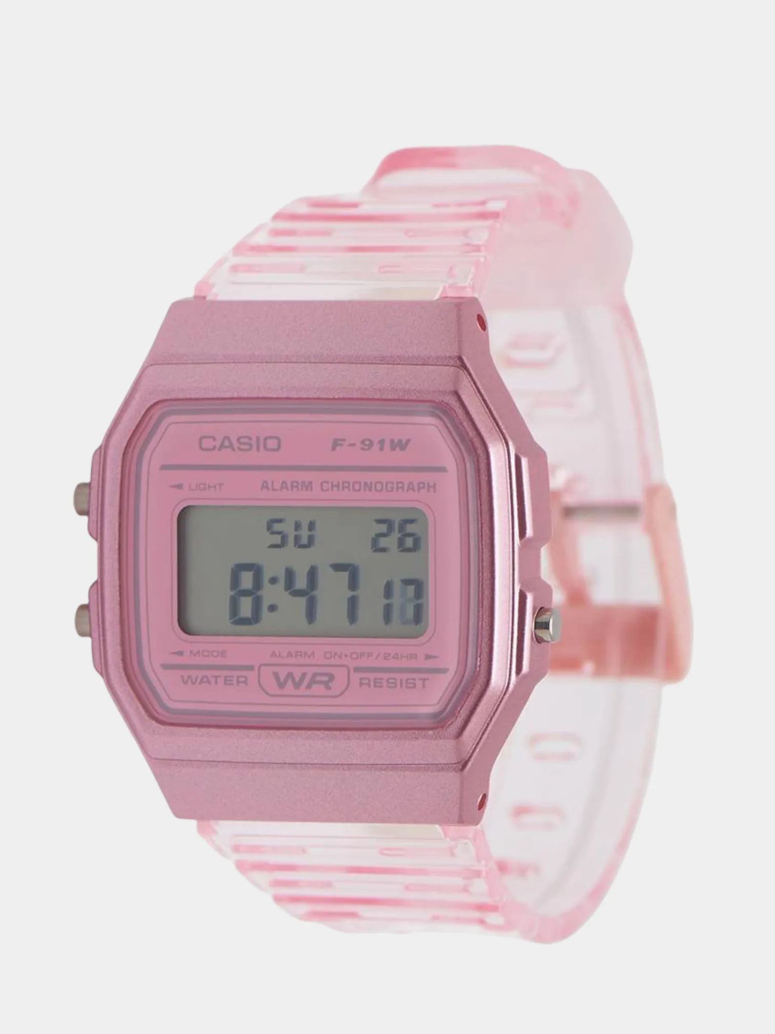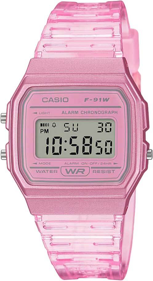 Женские кварцевые электронные наручные часы в популярном ретро-стиле. Серия Casio Collection. Дисплей подсвечивается светодиодом. 12-ти и 24-х часовой формат отображения времени. Секундомер с точностью показаний 1/100 с и временем измерения 1ч. Режимы измерения: прошедшее время, промежуточное время, два финишных результата. Ежедневный будильник, ежечасный сигнал. Автоматический календарь с установкой 28 дней на февраль. Прямоугольный пластиковый корпус розового цвета. Размеры корпуса 38,2мм на 33,2 мм, толщина 8.5 мм. Пластиковое стекло. Полупрозрачный розовый пластиковый ремешок с классической застежкой buckle. Срок службы батареи около 7 лет. Стальная задняя крышка крепится на 4-х винтах. Водостойкость WR30 (защита от брызг). Вес около 21 г.