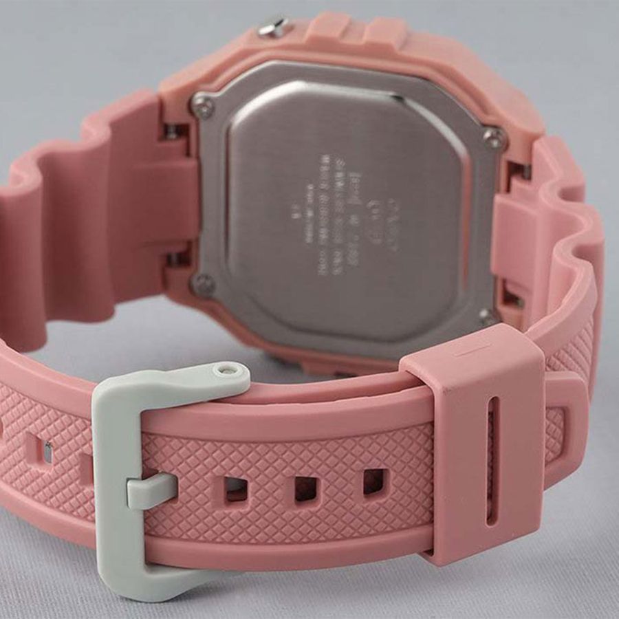 Женские кварцевые электронные наручные часы. Серия Casio Collection Standard Digital. Циферблат подсвечивается светодиодом. 12-ти и 24-х часовой формат отображения времени. Секундомер с точностью показаний 1/100 с и временем измерения 1ч. Режимы измерения: отдельные отрезки времени, измерение с разделением, два финишных результата. Ежедневный будильник, ежечасный сигнал. Автоматический календарь до 2099 года. Прямоугольный корпус из полимерного пластика розового цвета. Размеры корпуса 43.2мм на 44.4 мм, толщина 10.8 мм. Пластиковый ремешок розового цвета с классической застежкой buckle. Батарея рассчитана на 7 лет. Водонепроницаемость WR50 (мытьё рук, дождь). Вес около 37 г.