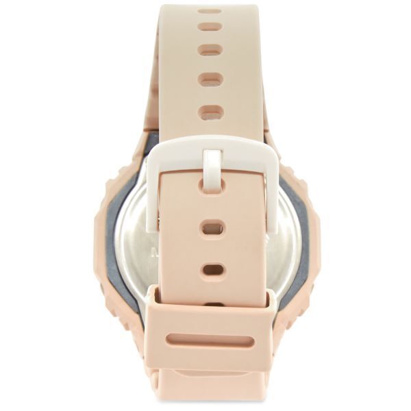 Женские кварцевые аналого-цифровые наручные часы. Серия G-Shock. Противоударный пластиковый корпус с углеродными волокнами (структура Carbon Core Guard) более прочный и в то же время более легкий, защищает механизм часов от ударов и вибраций. Двойная светодиодная подсветка обеспечивает подсветку не только цифрового дисплея, но и аналогового циферблата. Настройка продолжительности подсветки 1,5 или 3 секунды, послесвечение. Светящееся покрытие стрелок обеспечивает длительное послесвечение в темноте даже после короткого воздействия света. Аналоговое отображение времени (центральные часовая и минутная стрелки). Электронные дата и день недели. 12-ти и 24-х часовой формат отображения времени. Секундомер с точностью показаний 1/100 с (первый час) и 1 с (после первого часа) и временем измерения 24 часа. Режимы измерения: прошедшее время, промежуточное время, два финишных результата. Таймер обратного отсчета от 1 секунды до 24 часов (с интервалом в 1 секунду) с автоповтором. Мировое время - 31 часовой пояс (48 городов), всемирное координированное время (UTC), включение/отключение летнего времени. 5 ежедневных будильников, ежечасный сигнал. Функция перемещения стрелок для удобного просмотра информации на цифровом экране. Ретроградный стрелочный указатель для недели. Функция отключения/включения звука кнопок. Автоматический календарь до 2099 года. Усиленный углеродными волокнами пластиковый восьмиугольный корпус розового цвета. Размер корпуса 42,9 мм на 46,2мм, толщина 11,2мм.Розовый циферблат с часовыми метками в виде штрихов. Устойчивое к мелким механическим повреждениям минеральное стекло. Розовый пластиковый ремешок со стандартной застёжкой Buckle. Примерный срок службы батареи 3 года. Водонепроницаемость 200WR (плавание и ныряние без акваланга). Вес около 41 г.