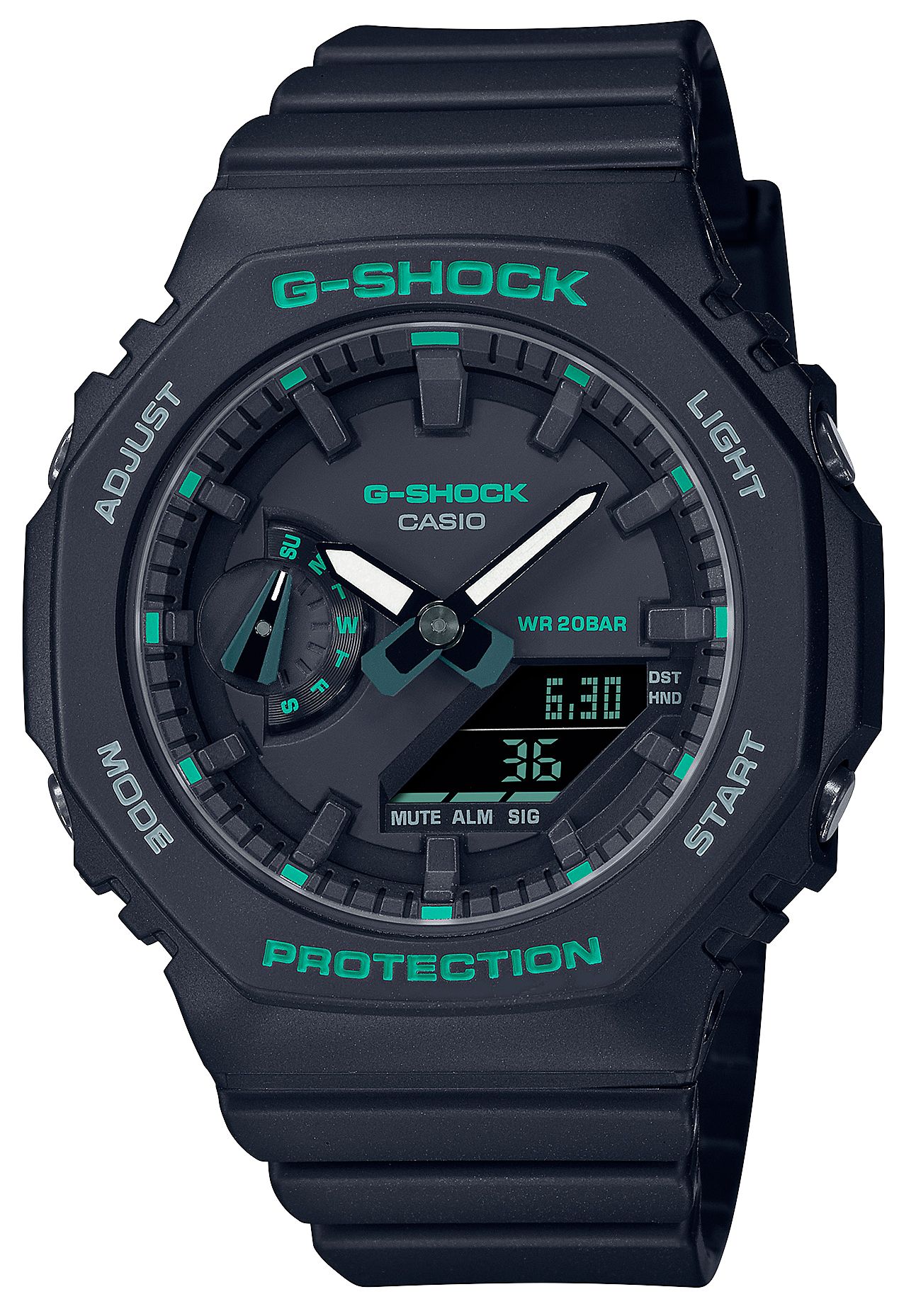 Женские кварцевые аналогово-цифровые наручные часы. Серия Casio G-Shock. Противоударный пластиковый корпус с карбоновыми волокнами более прочный и в то же время более легкий, защищает механизм часов от ударов и вибраций. Светодиодная подсветка освещает весь циферблат. Светящееся покрытие обеспечивает длительную подсветку в темное время суток после короткого воздействия света. Аналоговое отображение времени. Ретроградный индикатор дня недели. 12-ти и 24-х часовой формат времени. Секундомер с точностью показаний 1/100 с и временем измерения 24 часа. Таймер обратного отсчета от 1 мин до 24 ч с автоповтором. Мировое время . 5 будильников, ежечасный сигнал. Функция включения/отключения летнего времени. Функция перемещения стрелок. Функция отключения/включения звука кнопок. Усиленный углеродными волокнами пластиковый корпус. Пластиковый ремешок.