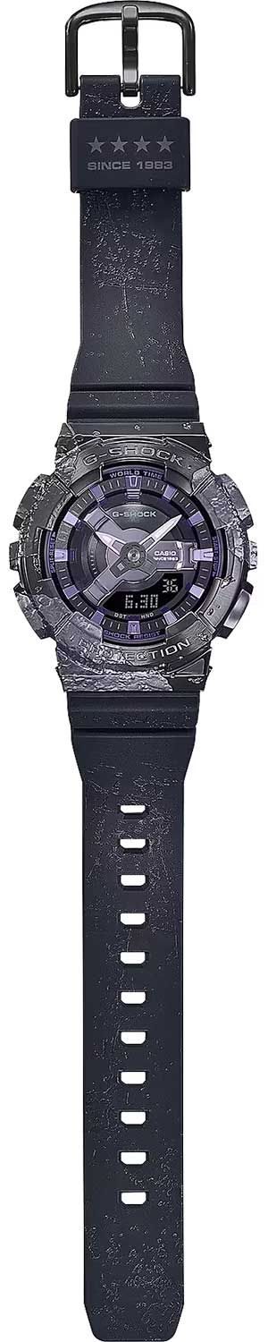 Женские кварцевые наручные часы c аналогово-цифровым отображением времени. Серия Casio G-Shock Limited. Модель выпущена ограниченной серией к 40-летию G-Shock - G-Shock 40th Anniversary Adventurer’s Stone. Вдохновением для дизайна часов послужили камни и различные минералы, которые использовали путешественники в средние века в качестве примитивного компаса. Противоударный корпус защищает механизм часов от ударов и вибрации. Двойная светодиодная подсветка обеспечивает подсветку не только аналогового циферблата, но и цифрового дисплея, выбор продолжительности подсветки 1,5 секунды или 3 секунды, послесвечение. Необритовое светонакопительное покрытие стрелок обеспечивает длительное послесвечение в темноте даже после кратковременного воздействия света. Мировое время – 48 городов (31 часовой пояс), всемирное координированное время (UTC). Автоматический переход на зимнее и летнее время, возможность включения/отключения данной функции. 12-ти и 24-х часовой формат отображения времени. Секундомер с точностью показаний 1/100 с (первый час), 1 секунда (после первого часа) и временем измерения 24 ч. Режимы измерения: прошедшее время, промежуточное время, два финишных результата. Таймер обратного отсчета от 1 с до 24 ч (с интервалом в 1 секунду). 10-секундный сигнал об окончании обратного отсчета. 5 ежедневных будильников, сигнал начала часа. Функция перемещения стрелок. Автоматический календарь до 2099 года. Включение/выключение звука кнопок. Корпус из полимерного пластика. Размеры корпуса 46 мм на 42 мм, толщина 13,1 мм.. Безель из нержавеющей стали с IP покрытием . Устойчивое к мелким механическим поврежедениям минеральное стекло. Задняя крышка украшена логотипом, созданным граффити-художником Эриком Хейзом в ознаменование 40-летия G-Shock. Чёрный пластиковый ремешок с классической застежкой Buckle, на петле ремешка четыре звезды в честь 40-летия G-Shock. Батарейка рассчитана на 3 года. Водонепроницаемость 200 WR (плавание и ныряние без акваланга). Вес около 58 г.