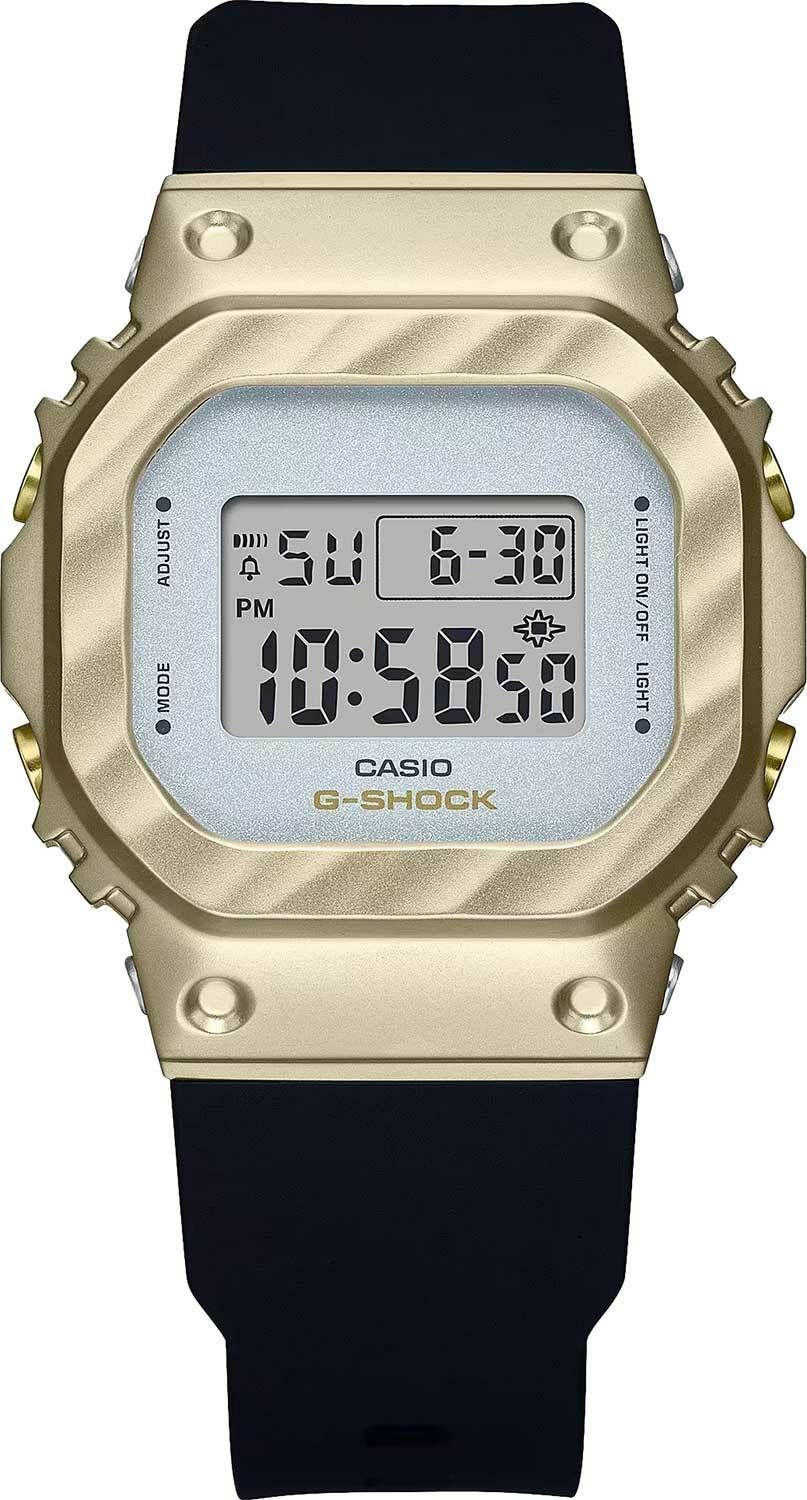 Женские кварцевые электронные наручные часы. Серия G-Shock S-series. Противоударный корпус защищает механизм часов от ударов и вибрации. Циферблат подсвечивается светодиодом. Цвет подсветки белый. Послесвечение. LED-индикатор (световая индикация сигнала) - лампочка начинает мигать при сигнале будильника, окончании таймера обратного отсчета или секундомера. Многофункциональный будильник - ежедневный сигнал, ежемесячный сигнал, сигнал каждый день определенного месяца, на определенную дату, сигнал начала каждого часа. 12-ти и 24-х часовой формат отображения времени. Секундомер с точностью 1/100 секунды (для первых 60 минут) и 1 секунда (после 60 минут) и временем измерения 24 ч. Режимы измерения: отдельные отрезки времени, промежуточное время, два финишных результата. Таймер обратного отсчета от 1с до 24ч с автоповтором. Автоматический календарь до 2099 года. Устойчивое к мелким механическим повреждениям минеральное стекло. Восьмиугольный корпус из нержавеющей стали с покрытием цвета жёлтого золота и полимерного пластика. Размеры корпуса 38,x43,8мм, толщина 10,9мм. Стальная задняя крышка крепится на 4-х винтах. Чёрный пластиковый ремешок, стандартная застёжка buckle. Приблизительный срок службы батареи 3 года. Водонепроницаемость 200 WR (плавание и погружение без акваланга). Вес примерно 50 г.