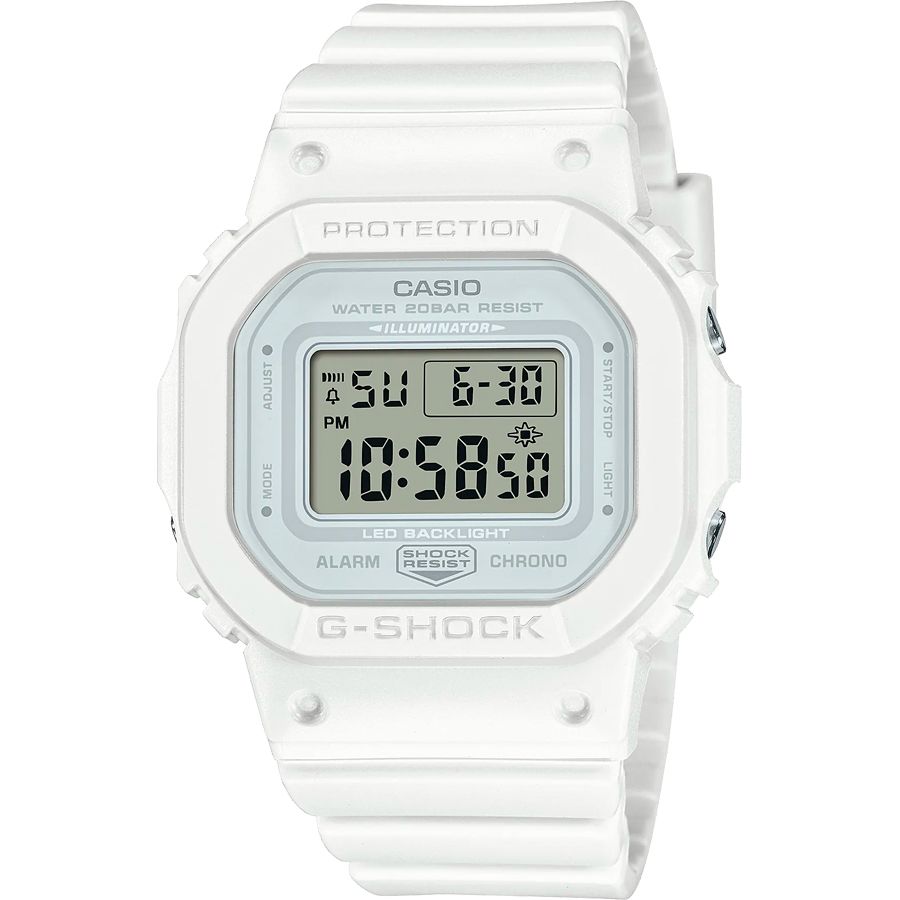 Женские кварцевые электронные часы. Коллекция G-Shock. Противоударный корпус защищает механизм часов от ударов и вибрации. Светодиодная подсветка с функцией послесвечения. Световой сигнал (LED-индикатор) - светодиодная лампочка начинает мигать при сигнале будильника, окончании таймера обратного отсчета или секундомера. Секундомер с точностью показаний 1/100 секунды (первый час), 1 секунда (через 1час) и пределом измерения 24 часа. Режимы измерения: прошедшее время, промежуточное время, два финишных результата. Таймер обратного отсчета от 1 минуты до 24 часов (с интервалом в 1 минуту) с автоповтором. 12-ти и 24-х часовой формат отображения времени. Многофункциональный будильник: сигналы ежедневный, ежемесячный, каждый день определенного месяца, на определенную дату. Ежечасный сигнал. Автоматический календарь до 2099 г. Прямоугольный корпус из полимерного пластика белого цвета. Размер корпуса 45,7 мм x 40,5 мм , толщина 11,9 мм. Белый ремешок из полимерного пластика, стандартная застежка. Прочное минеральное стекло устойчивое к мелким механическим повреждениям. Водостойкость WR 200 (плавание и ныряние без акваланга). Вес примерно 41 г.