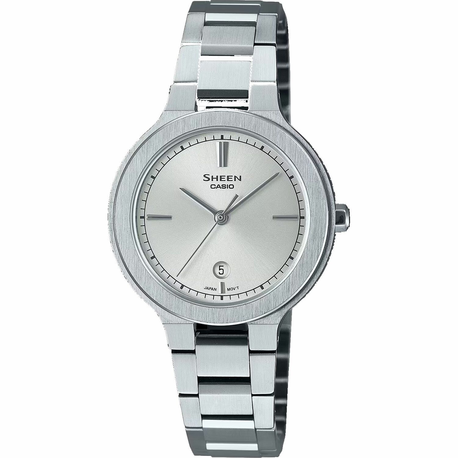 Женские кварцевые аналоговые наручные часы. Центральные часовая, минутная и секундная стрелки. Апертура даты в позиции 6 часов. Серебристый циферблат. Круглый корпус выполнен из нержавеющей стали. Размер корпуса составляет 35 х 30 х 6,2 мм. Стальной браслет, тройная раскладывающаяся застежка. Устойчивое к возникновению царапин сапфировое стекло. Водостойкость WR 50 (мытье рук, дождь). Вес примерно 60 г.