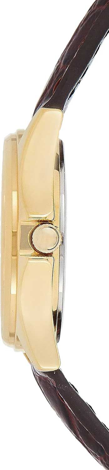 Женские аналоговые кварцевые наручные часы. Серия Casio Collection. Центральные часовая, минутная и секундная стрелки золотистого цвета. Белый циферблат с часовыми метками в виде штрихов. Окошко даты в положении 3 часа. Рифленая переводная головка с защитой. Круглый корпус из нержавеющей стали с IP покрытием цвета жёлтого золота. Размер корпуса 31.5 мм на 28.5 мм, толщина 6.6 мм. Устойчивое к мелким механическим повреждениям минеральное стекло. Коричневый кожаный ремешок с классической застежкой buckle. Батарейка рассчитана на 3 года. Водонепроницаемость WR30 (защита от брызг).