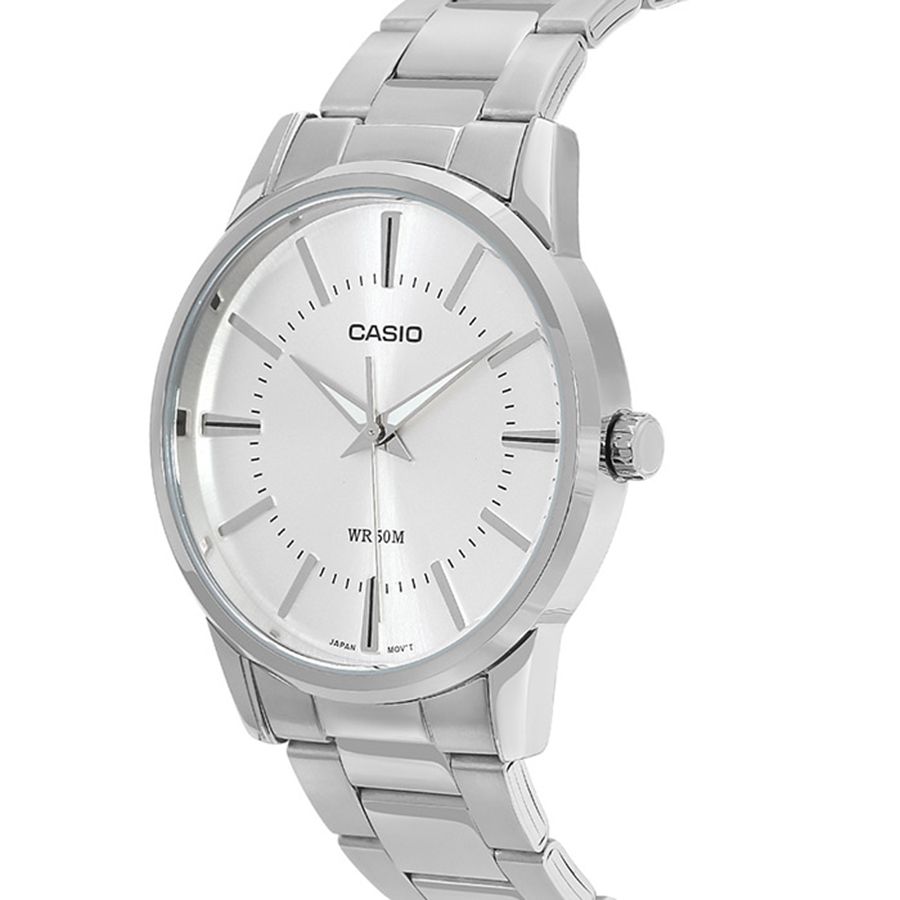 Женские кварцевые аналоговые часы. Серия Casio Collection. Центральные часовая, минутная и секундная стрелки. Серебристый циферблат с часовыми метками в виде штрихов. Стрелки с люминесцентным покрытием, которое светится в темноте после непродолжительного воздействия света. Устойчивое к мелким механическим повреждениям минеральное стекло. Круглый корпус из гипоаллергенной латуни серебристого цвета. Размер корпуса 35,5 мм на 30 мм, толщина 7,5 мм. Стальной браслет с тройной раскладывающейся застежкой. Батарея рассчитана на 3 года. Водонепроницаемость 50WR (допускается мытьё рук, брызги дождя). Вес около 65 г.