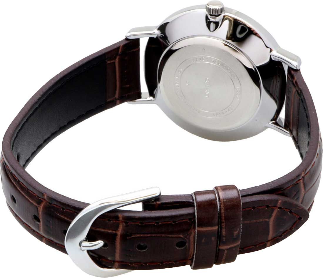 Женские кварцевые аналоговые наручные часы. Серия Casio Collection. Центральные часовая, минутная и секундная стрелки золотистого цвета. Серебристый циферблат с часовыми метками в виде штрихов и двух римских цифр VI и XII. Устойчивое к мелким механическим повреждениям минеральное стекло. Круглый корпус серебристого цвета. Размер корпуса 34 мм на 40 мм, толщина 7.9 мм. Рифлёная переводная головка. Коричневый кожаный ремешок с классической застёжкой buckle. Батарейка рассчитана на 3 года. Водонепроницаемость 30 WR (защита от брызг). Вес около 31 г.