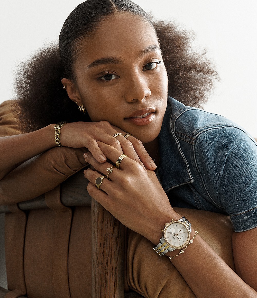 Женские кварцевые наручные часы Fossil ES5215. Ремешок из эко-кожи. Стальной корпус. Водонепроницаемость 5WR. Минеральное стекло. Хронограф. Люминисцентное покрытие стрелок.