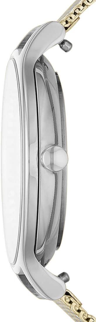Кварцевые часы. Водостойкость WR 30. Центральные часовая, минутная и секундная стрелки. Перламутровый циферблат с часовыми индексами в виде штрихов и римских цифр. Корпус выполнен из нержавеющей стали. Диаметр корпуса 30 мм, толщина 7 мм. Устойчивое к возникновению мелких механических повреждений минеральное стекло. Браслет миланского плетения, выполнен из нержавеющей стали с частичным IP покрытием. Ширина браслета 12 мм.