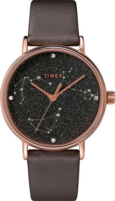 Кварцевые часы. Водостойкость WR 50. Центральные часовая, минутная и секундная стрелки. Подсветка Indiglo. Циферблат с часовыми индексами в виде точек. Корпус выполнен из металла с IP покрытием. Диаметр корпуса 37 мм. Устойчивое к возникновению мелких механических повреждений минеральное стекло. Текстильный ремешок на кожаной основе. Ширина ремешка 18 мм. Часы украшены кристаллами Swarovski.