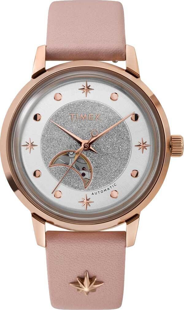 Яркое дизайнерское решение от Timex, вдохновленное звездами ночного неба, несомненно придется вам по душе. Celestial Opulence. В механизме 21 камень. Запас хода 40 часов. Сквозь прозрачное окошко на циферблате можно наблюдать за работой механизма часов. Циферблат выполнен по технологии Sunray (солнечные лучи). Прозрачная задняя крышка. Кожаный ремешок с классической застежкой и системой быстрой замены.
