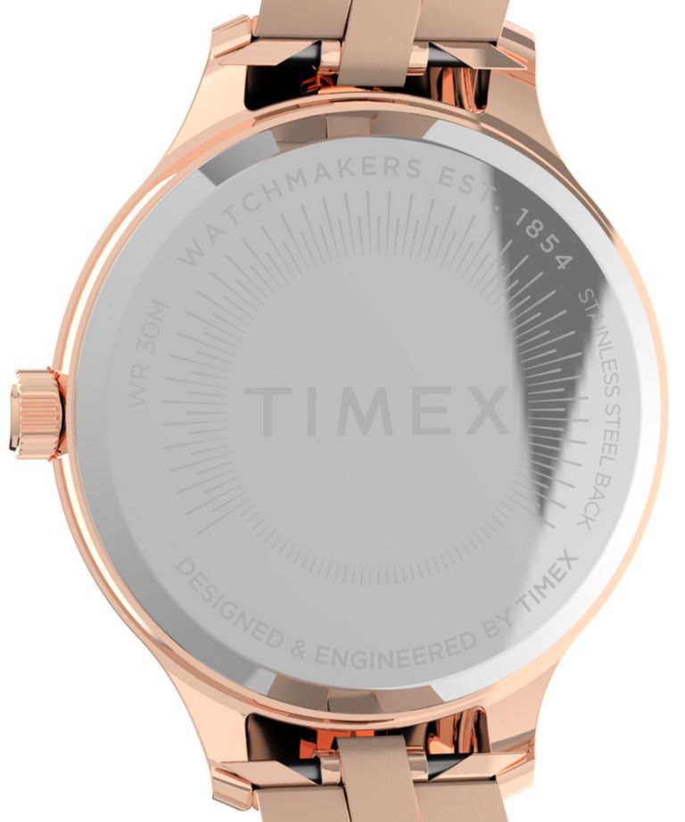 Женские кварцевые аналоговые часы. Центральные часовая и минутная. Розовый циферблат. Часовые метки в виде точек и цветков. Круглый корпус с розовым PVD покрытием диаметром 34 мм. Стальной браслет с розовым PVD покрытием шириной 14 мм, раскладывающаяся застежка. Прочное минеральное стекло устойчивое к мелким механическим повреждениям. Водостойкость WR 30 (брызги).