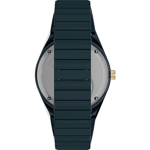 Женские кварцевые аналоговые наручные часы. Коллекция Q Timex Celestial. Центральные часовая, минутная и секундная стрелки. Синий циферблат украшен звездами и кристаллами. Часовые метки в виде штрихов. Люминесцентные стрелки и метки. Круглый корпус выполнен из нержавеющей стали с синим PVD покрытием. Диаметр корпуса 36 мм, толщина 12 мм. Вращающийся алюминиевый безель. Рифленая переводная головка. Задняя крышка крепится на 4-х винтах и имеет специальное отверстие для замены батарейки с отдельной крышкой. Стальной браслет-резинка с покрытием синего цвета, ширина 16 мм. Водостойкость WR 50 (мытье рук, дождь).