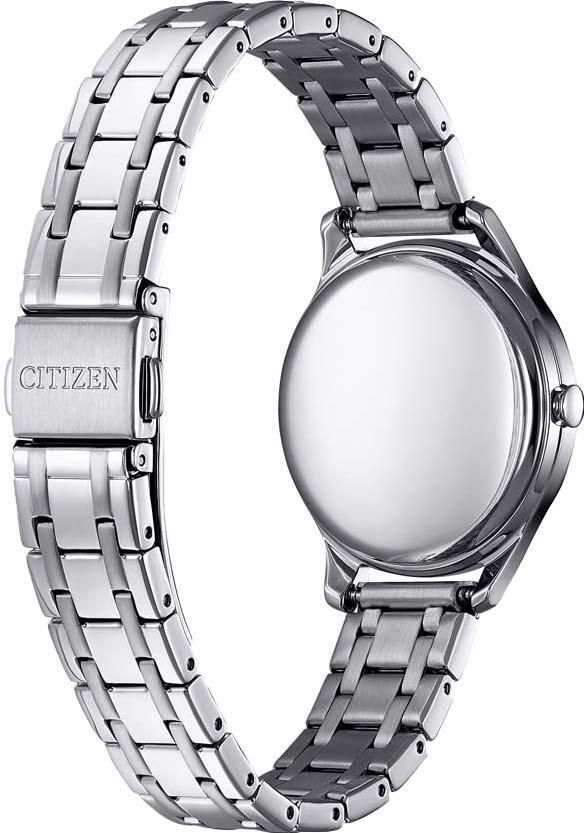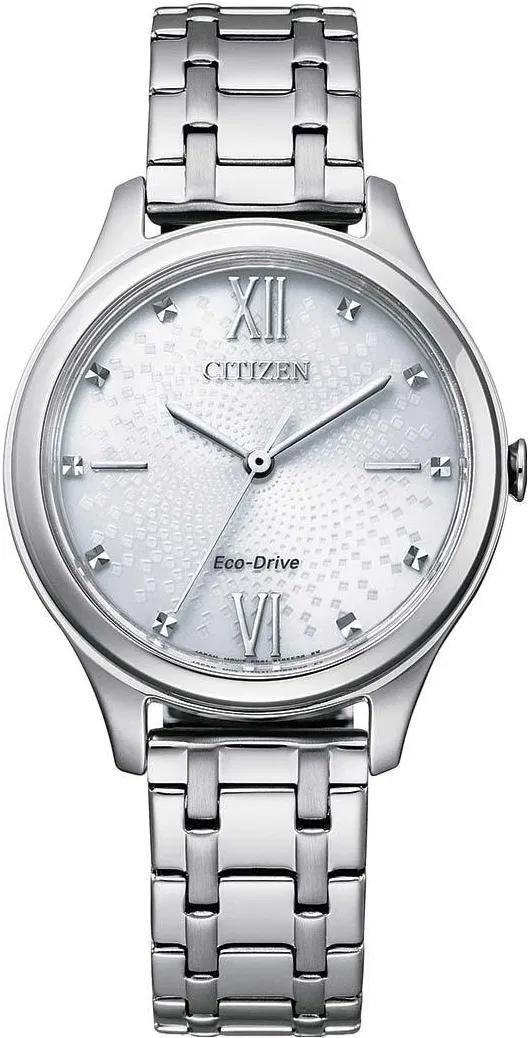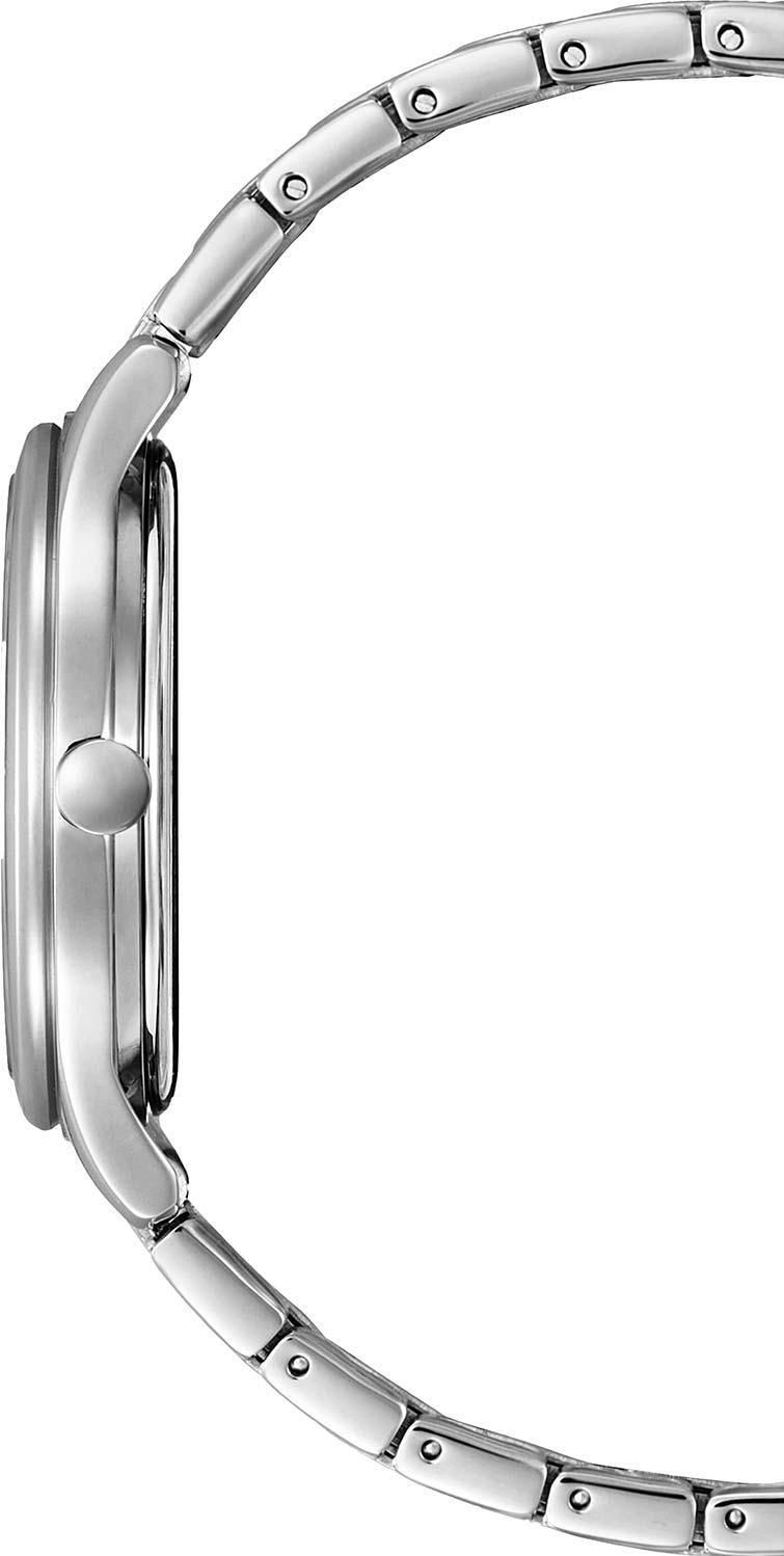 Женские кварцевые часы на солнечной батарее. Запас хода при полной зарядке 180 дней. Центральные часовая, минутная и секундная стрелки. Серебристый циферблат. Круглый корпус выполнен из матовой нержавеющей стали. Диаметр корпуса составляет 32 мм, толщина 7,6 мм. Стальной браслет шириной 14 мм, раскладывающаяся застежка. Прочное минеральное стекло устойчивое к мелким механическим повреждениям. Водостойкость WR 50 (мытье рук, дождь).