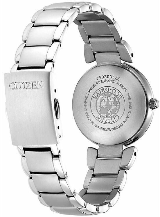 • Японский кварцевый механизм с аналоговой индикацией, калибр E031, оснащенный системой питания и подзарядки от солнечных батарей Eco-Drive.